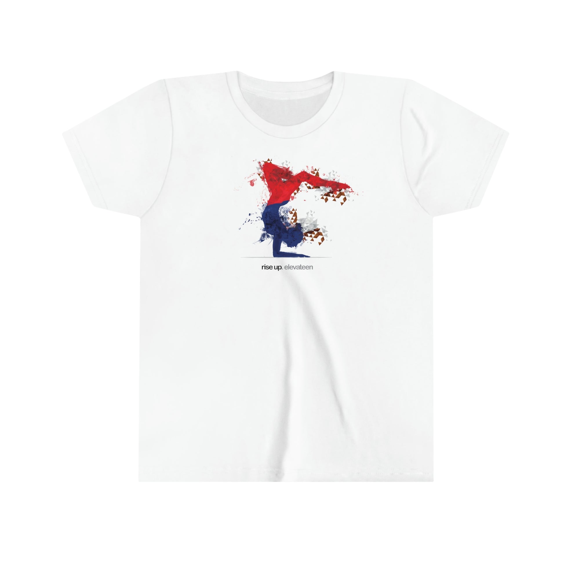 This vibrant and playful youth tee is perfect for gymnastics fans of all ages! Made with high-quality materials for a comfortable fit. RISE UP!